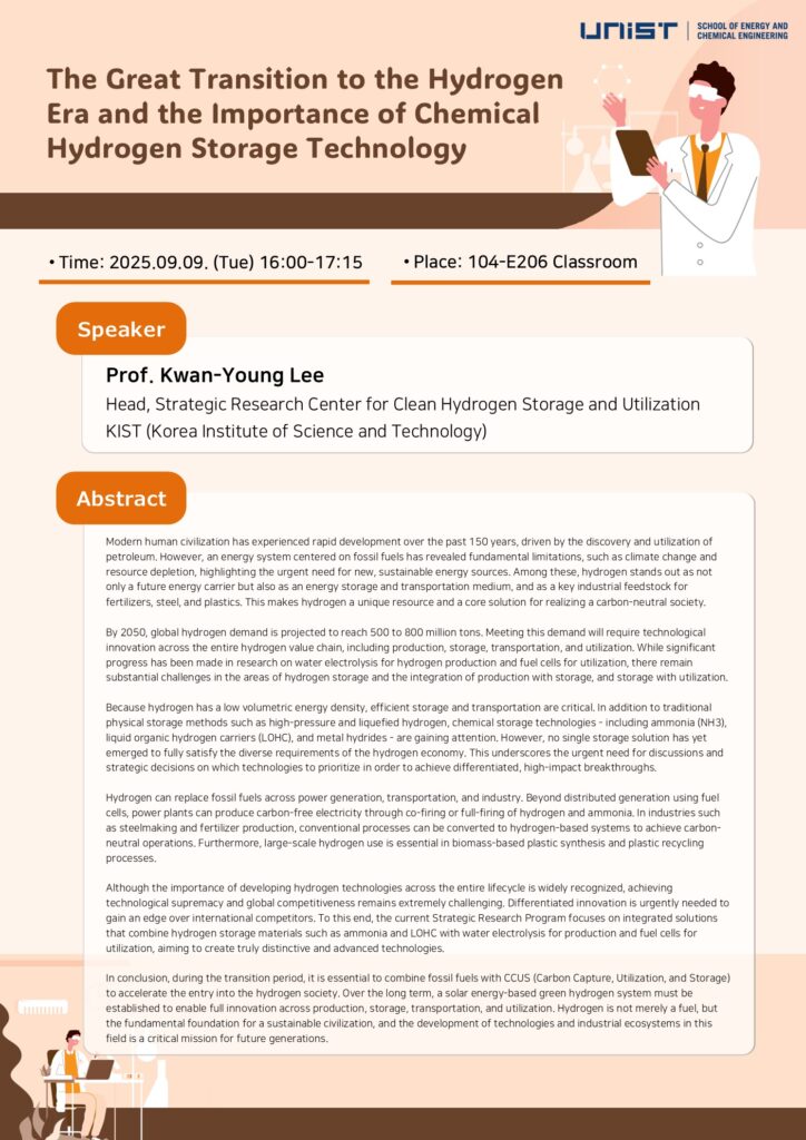 [2025-2 Seminar] The Great Transition to the Hydrogen Era and the Importance of Chemical Hydrogen Storage Technology